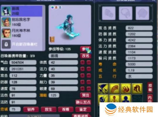 结果出了一个7技能净台画魂,虽然格子比以前少,但变成四内丹也可以接受,老板觉得运气不错当场打书。