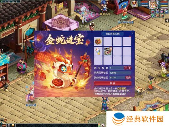 3.金蛇进宝礼包无需预订,可以直接支付仙玉购买;每次可以购买多个金蛇进宝礼包。