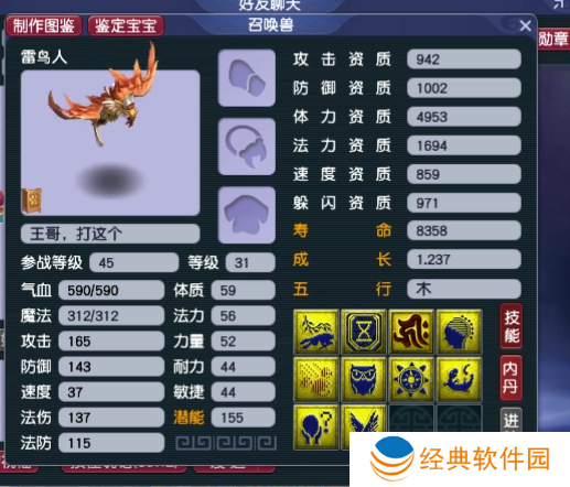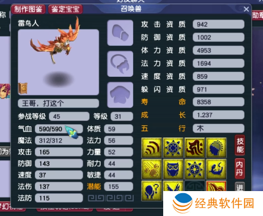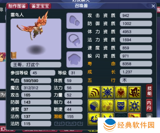 今日,一位玩家准备给这只有10个技能的须弥雷鸟人进行打书。这只胚子的技能数相当丰富,认证**,技能总数将增至11个,这无疑降低了打书的整体难度。然而,它自带的坑书技能较多,包括再生、冥思和慧根,在后续认证过程中,还会出现弱点、吸收或迟钝等技能。