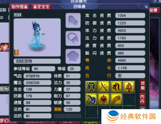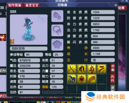 第四本上高级反震,掉盾气。玩家经过深思熟虑后决定停止打书,这样的配置已经相当出色。搭配高敏套装,可以作为卡速宠物使用;而若选择迟钝套装,则能当龟速宝宝用。在实战PK以及挑战高难度天地任务时,这样的泪妖都将发挥出极大的作用。