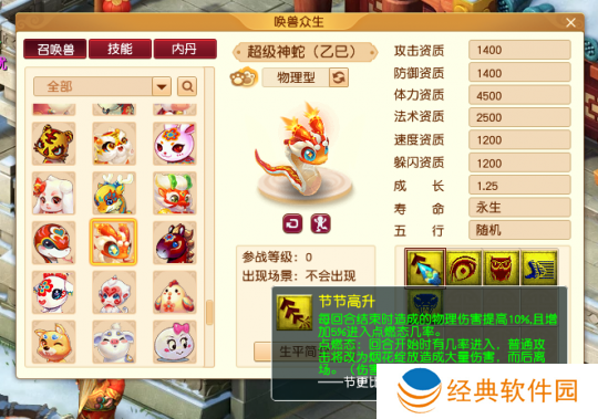 总的来说,超级神蛇(乙巳)适合做物理输出,但由于其特殊技能的影响,用它就要考虑到“五蛇**”的名场面。不过,如果你的队伍输出很足,打绝大多数怪物都是1-2回合的情况下,超级神蛇(乙巳)的确有一定发挥空间和竞速效果!