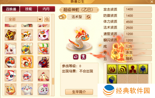 法术型超级神蛇(乙巳)的初始技能组为地狱烈火、高级法术波动、高级精神集中、魔之心、慧根。从应用方面来说,你可以打高级魔之心和高级法术暴击,带高法连套去刷任务。但由于目前的法宠只要没有须弥,除了扫塔之外很难想到他们的发挥空间。