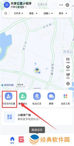 3、进入之后就能点击共享实时位置,需要分享给好友才能共享。