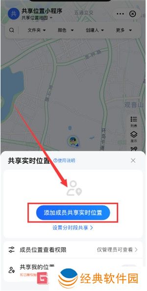 4、点击添加成员共享实时位置,可以设置不同的时间段以及成员权限。