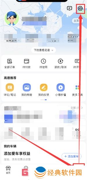 高德地图共享实时位置使用介绍1、打开高德地图APP,进入我的后,点击右上角设置。