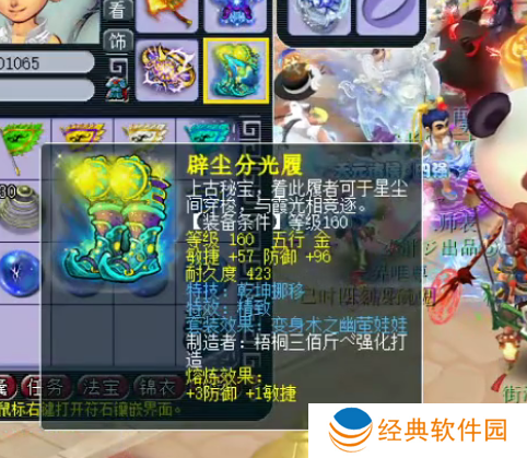 渔岛这边也有大动作,办总的五庄装备终于齐了。这是160怒目双加男衣,属性非常极限!