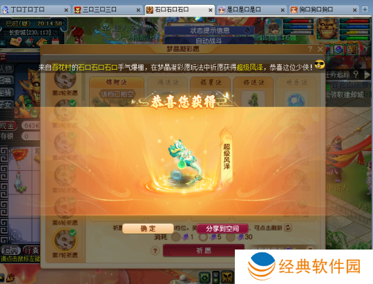 【百花村】粉丝发来投稿,玩家“石”喜提一只嘉年华超级风泽神兽,卖个几千块美滋滋,这五开名字能中神兽也是秀。