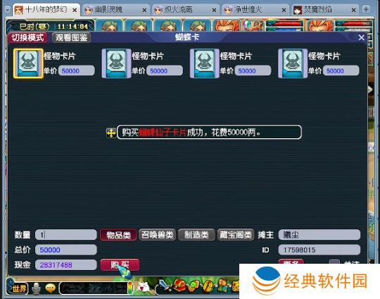卡片也已经用光,收了好久才搞到一车。新资料片出来后虽然可以直接变,但一小时两万还是没有卡片合算,变一次蝴蝶能坚持俩小时,等于系统的四万。