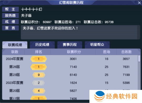 各位少侠大家好,又到了小编探区的时间啦。今天,咱们的目的地是2024年帮派联赛冠军“幻雪阁”所在的服务器——夫子庙。