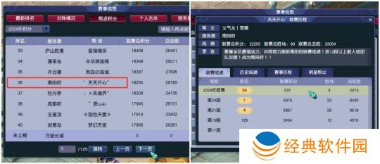 南阳府的“天天开心”虽然起步较晚,但实力同样不容小觑。人气玩家雪碧接手帮派后,在帮派联赛中一路高歌猛进,最终“天天开心”也拿到了2024年度第58名的好成绩。