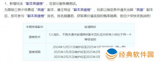新玩法“副本英雄榜”已上线本周测试服。简单说,这个玩法就是副本的竞速榜单,通关副本的队伍消耗回合数和阵亡次数越少,在榜单上的排名将会越靠前。目前仅开放了秘境降妖副本榜单,并分成了三个挑战周期。