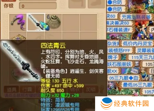 有小号鉴定了130级剑弹出专用,就果断点了,结果出大货。130级剑,伤害+497,命中+599,耐力+32,魔力+28,特效是简易,非常适合神木林、魔化生等法系,唯一难受就是底子太差了,要花时间练号。