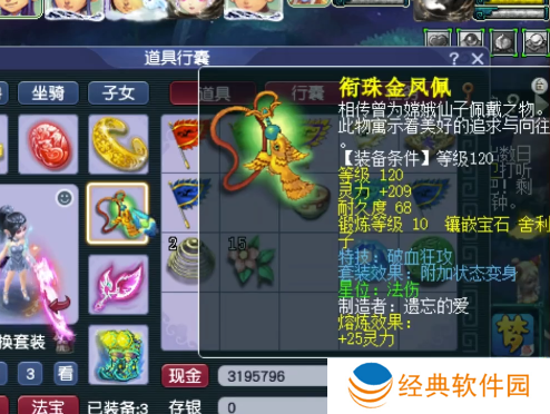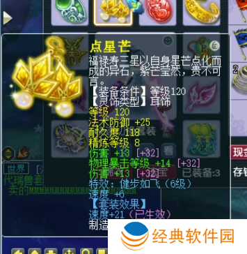 120级耳饰,主属性法防,下排2伤害1物暴,带6级健步如飞。