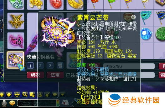 160级不磨腰带,12锻黑宝石,熔炼后防御+92,气血+399。