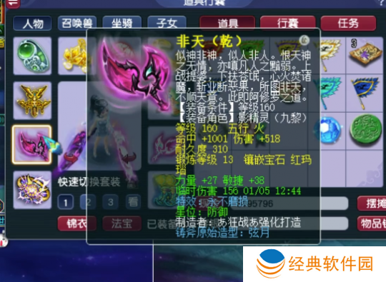160级不磨武器,13锻红玛瑙,总伤851.67,力量+27,敏捷+38。
