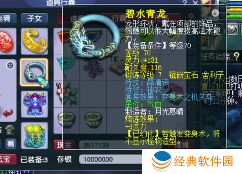 70级晶清诀神农项链,7锻舍利子,熔炼后灵力+135。