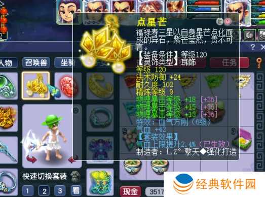 120级耳饰,主属性法防,下排3物暴,带6级血气方刚。