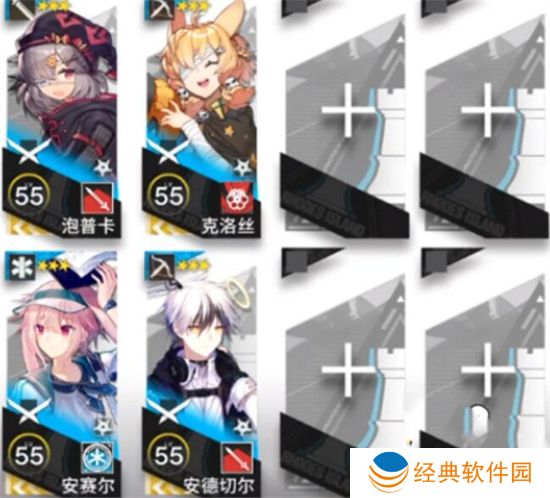 需求干员:泡普卡(群攻近卫)、克洛丝(单狙)、安德切尔(单狙)、安赛尔(单奶)