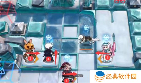 开局部署近卫(向右)→ 单狙(向右)→ 单奶(向左)→ 单狙(向上)