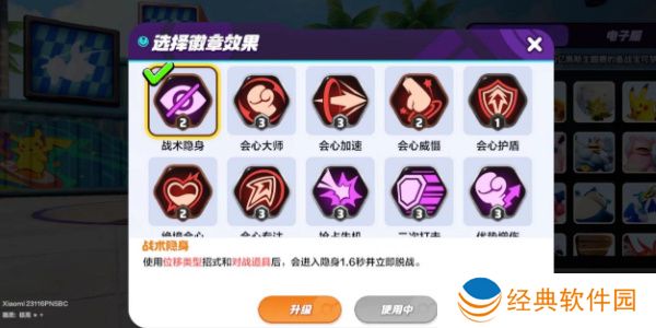 效果:使用位移招式和对战道具时,会进入隐身1.6秒并脱战。