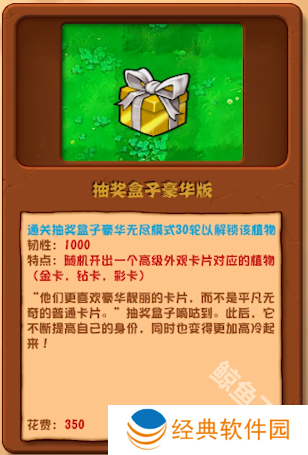 通关抽奖盒子豪华无尽模式30轮以解锁该植物。