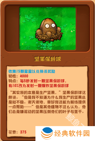 特点:每5秒发射一颗坚果保龄球,有10%改为发射一颗爆炸坚果保龄球。