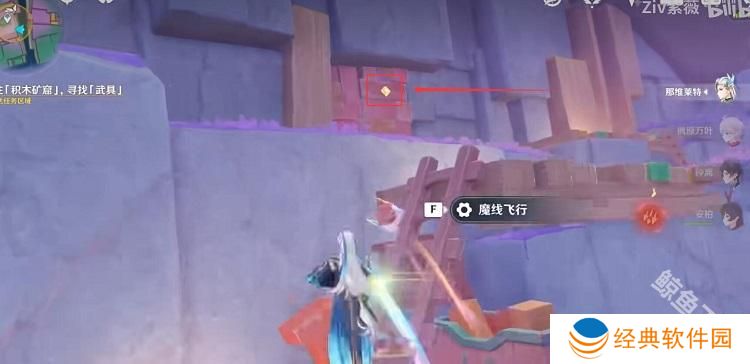 3、然后在对面可以发现一个TNT炸药,我们直接过去拿到手,需要使用魔线飞行。
