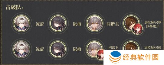 流萤击破队:流萤+同谐主+阮梅+灵砂/加拉赫,增益效果:噱头。