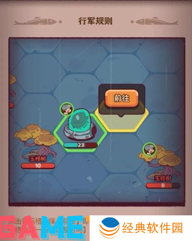 其中涉及到分工合作,因为这个有迷雾可视范围为3个格子,不知道前方有没有人在埋伏劫道,砍树仔和捉兔仔身上带着资源负重一格格的跑不快,需要高战玩家护送,或者砍树仔和捉兔仔弄完资源马上点击回城读秒,高战玩家在旁边守卫一下。