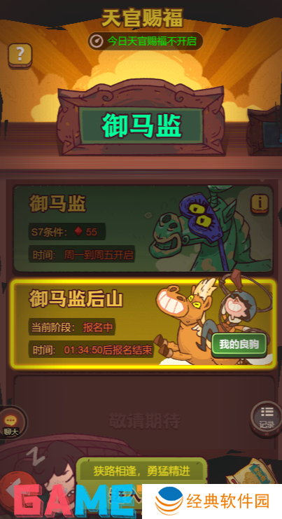 咸鱼之王御马监怎么玩?关于这个御马监的玩法,有一部分玩家不太清楚这个御马监要怎么玩。有很多玩家在周末的时候想要玩御马监,但是发现玩不了,因为御马监是在周一到周五期间开启的,所以玩家们一定要清楚开启的时间,只有在正确的时间开启才能够开始玩这个模式。那当我们报名了御马监之后,怎么样玩可以起到更好的效果呢?下面是小编带来的详细攻略,玩家们可以在周一到周五的时候再去游戏里面尝试!