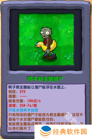 只在水池关卡出现只有特定的僵尸才能成为救生圈僵尸,这可不是每个水货僵尸都能胜任的。
