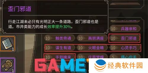 ⑤任一市井类能力达到5级,下一周目初始可选特性-歪门邪道:市井类能力成长效率提升30%。
