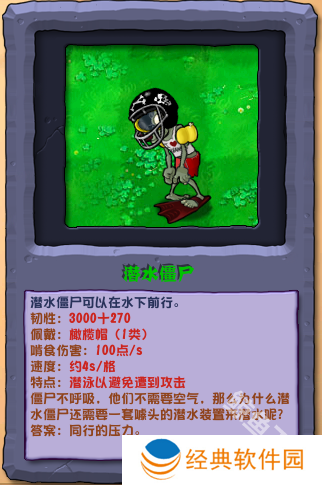 植物大战僵尸杂交版潜水僵尸属性详情图鉴