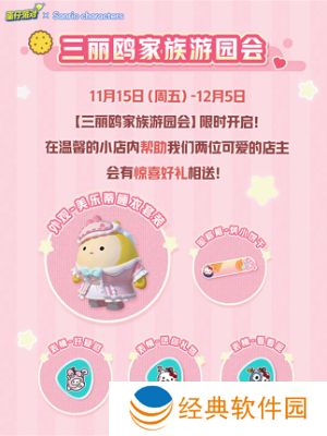 11月15日(周五)-12月5日,【三丽鸥家族游园会】限时开启!在温馨的小店内帮助我们两位可爱的店主会有惊喜好礼相送!