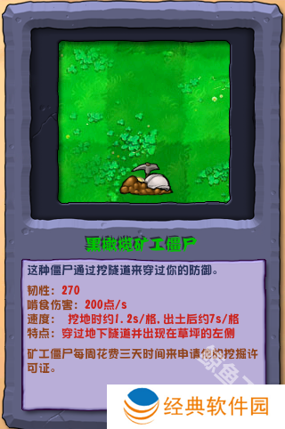 黑橄榄矿工僵尸这种僵尸通过挖隧道来穿过你的防御。
