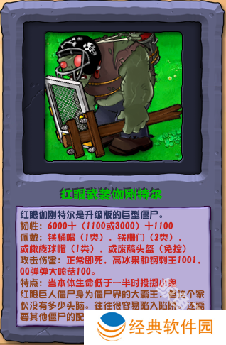 红眼巨人僵尸身为僵尸界的大霸王,但这个家伙没有多少头脑。往往很容易陷入陷阱。还需要其他僵尸的配合。