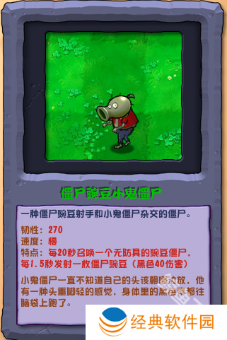 一种僵尸豌豆射手和小鬼僵尸杂交的僵尸。