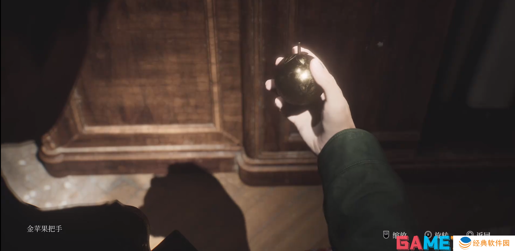 从二楼下楼开门进入庭院,爬入窗户进入112,出门右转走到走廊尽头调查钥匙触发剧情,回到接待处,右侧的门开了,进入108号房间有个衣柜转动把手即可拿到关键物品金苹果把手。