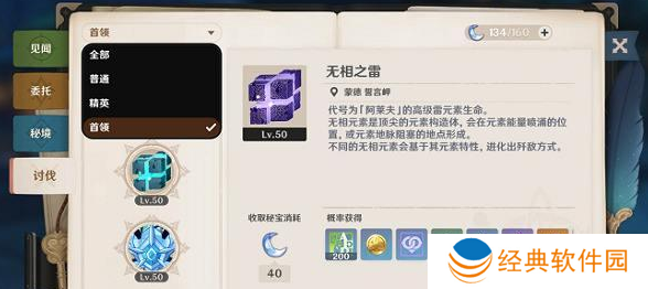 原神打开讨伐-首领即可见到原神中所有首领。首领敌人有无相之雷、无相之风、无相之岩、纯水精灵、急冻树、爆炎树、北风的王狼。