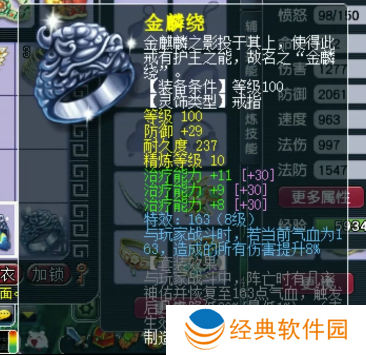 100级戒指,主属性防御,下排2速度1治疗,带8级163。