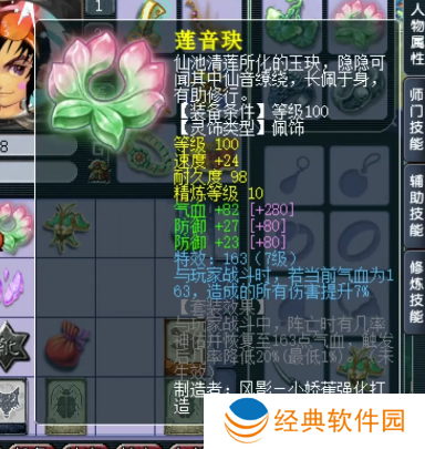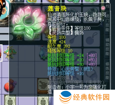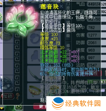 100级佩饰,主属性速度,下排3法防,带8级163。