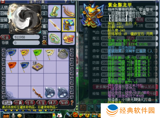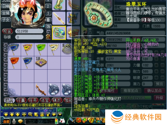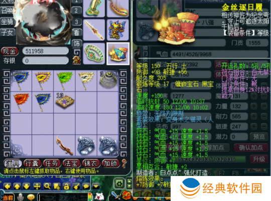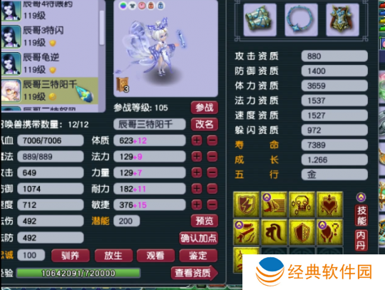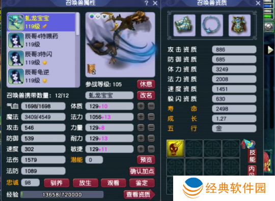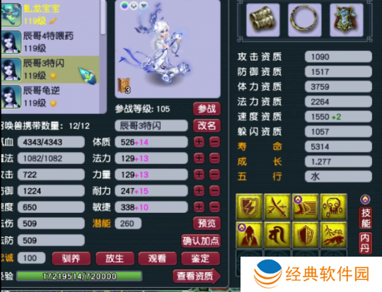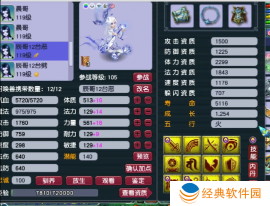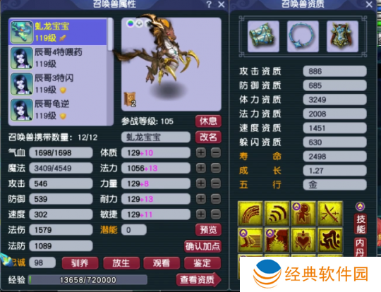 玩家身上多件五孔无级别特技装备加持,多只多特殊技能召唤兽。