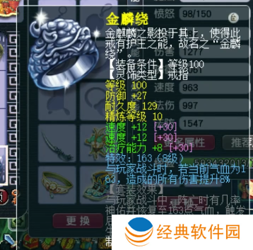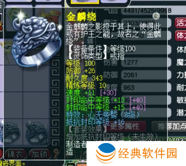 100级戒指,主属性防御,下排2封印1速度,带8级163。