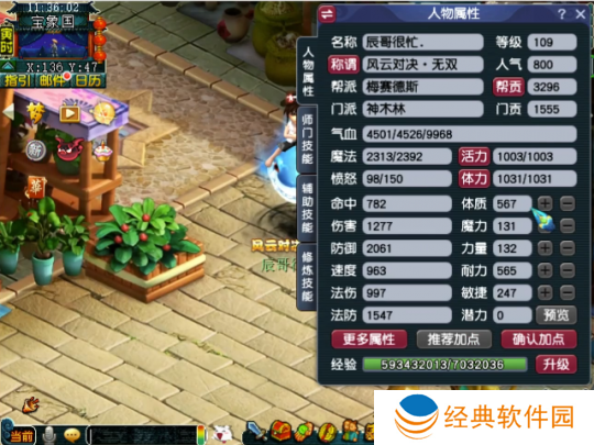 无符面板属性气血9968,防御2061,速度963,法防1547。