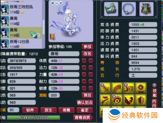 在神威组的激烈比拼中,无论是装备硬件,还是宝宝的质量,都是决胜的关键。这位方寸山玩家正是凭借着这些极品孤品装备和多特殊技能的暴力召唤兽,成功地在众多高手中脱颖而出,赢得了16强的荣誉。