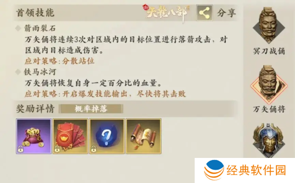 1.首领BOSS万矢俑将则是考验大家走位规避伤害和输出能力的BOSS,同样也拥有2个技能机制。