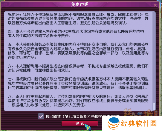 在阅读完免责声明并同意后,即可体验全新版本的梦幻精灵,享受更智能的问答体验。