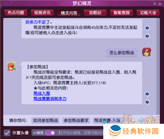 有了【AI增强】后的梦幻精灵,可以根据上下文强化理解玩家问题的能力,能够围绕同一主体(如门派、帮派等)连续给出解答,与玩家间的提问交流更加顺畅和连贯。