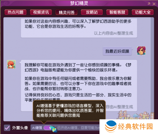 以上就是本次【AI增强】给梦幻精灵带来的全部增幅效果,其他更多亮点还期待玩家在体验中发掘,相信随着AI算法的升级,梦幻精灵一定能给玩家提供更优质的回答服务!