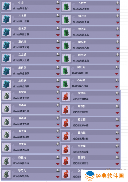 成功击杀后获得1点成就,总共28个星宿28点成就。